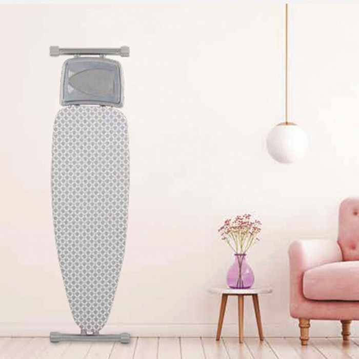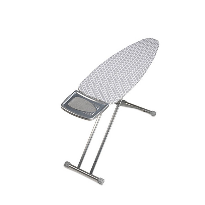 Masa de călcat are cadru stabil și robust cu capace anti-alunecare. Masa este destinată utilizării intensive, are blat din plasă metalică perforat special pentru trecerea aburilor și suport pentru fierul de călcat.