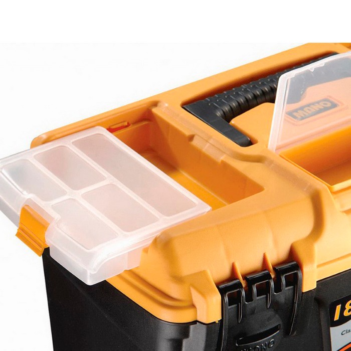 Cutia de instrumente multifuncțională are un rol in orice locuință, garaj, atelier sau birou. Puteți stoca in aceasta unelte si accesorii mici (cuie, șuruburi etc.), care va vor ajuta sa mențineți ordinea si sa faceți lucrurile necesare ușor. Compartimentele din partea de sus, un sertar detașabil cu mâner si o caseta mare in partea de jos, facilitează organizarea. Este echipat cu un mâner convenabil de transport si doua elemente de fixare si este perfecta atât pentru începători, cat si pentru profesioniști.