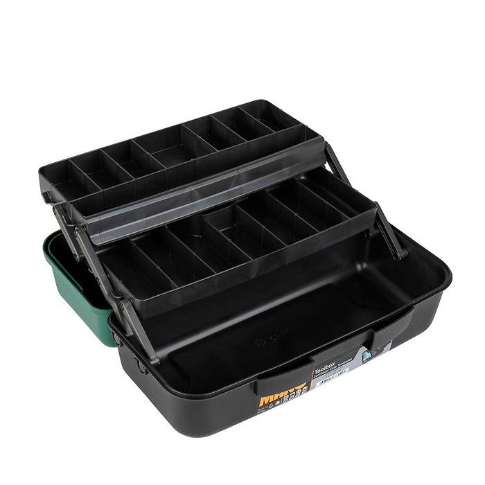 Cutia de instrumente multifuncțională are un rol in orice locuință, garaj, atelier sau birou. Puteți stoca in aceasta unelte si accesorii mici (cuie, șuruburi etc.), care va vor ajuta sa mențineți ordinea si sa faceți lucrurile necesare ușor. Compartimentele din partea de sus, un sertar detașabil cu mâner si o caseta mare in partea de jos, facilitează organizarea. Este echipat cu un mâner convenabil de transport si doua elemente de fixare si este perfecta atât pentru începători, cat si pentru profesioniști.