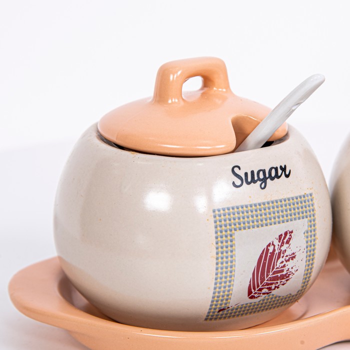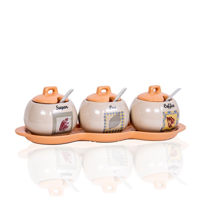 Set recipiente condimente, GS, Ceramica, 3 piese, Alb