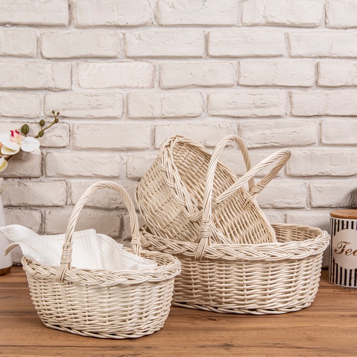 Set 3 cosuri, SERBAN, Lozie, 28x24x25cm, 32x29x29cm, 40x35x33cm, Crem