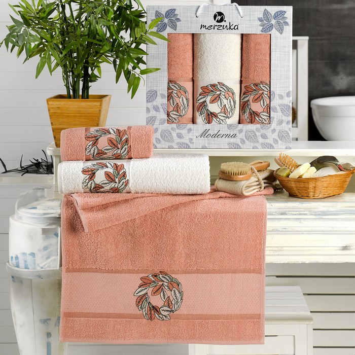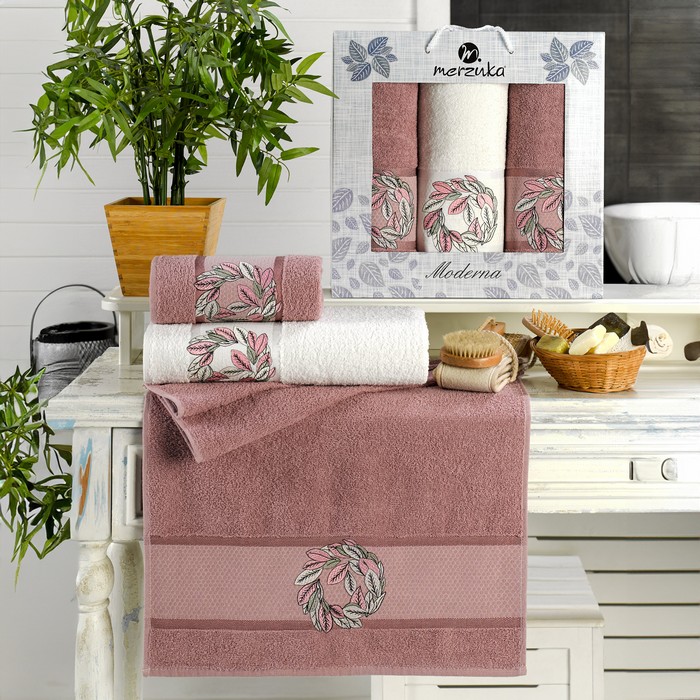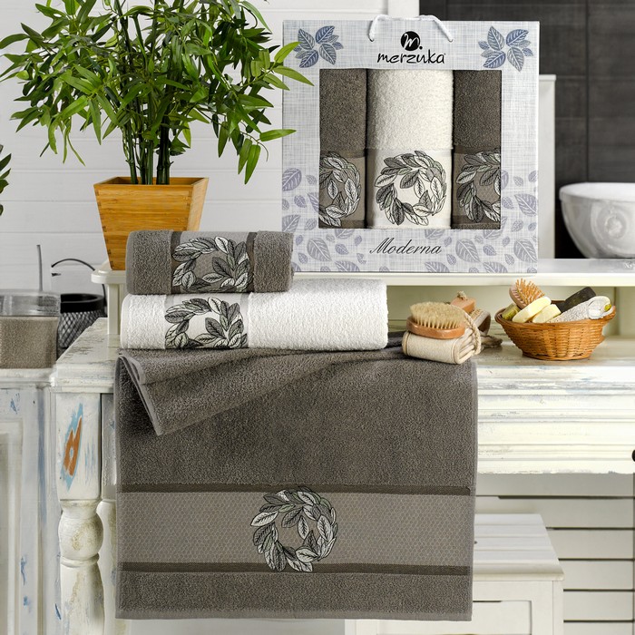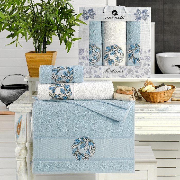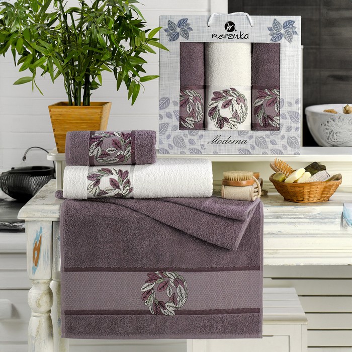 Set prosoape, MERZUKA, 3 piese, 50x90 cm, 70x140 cm, Moderna, Bumbac, Diverse Culori