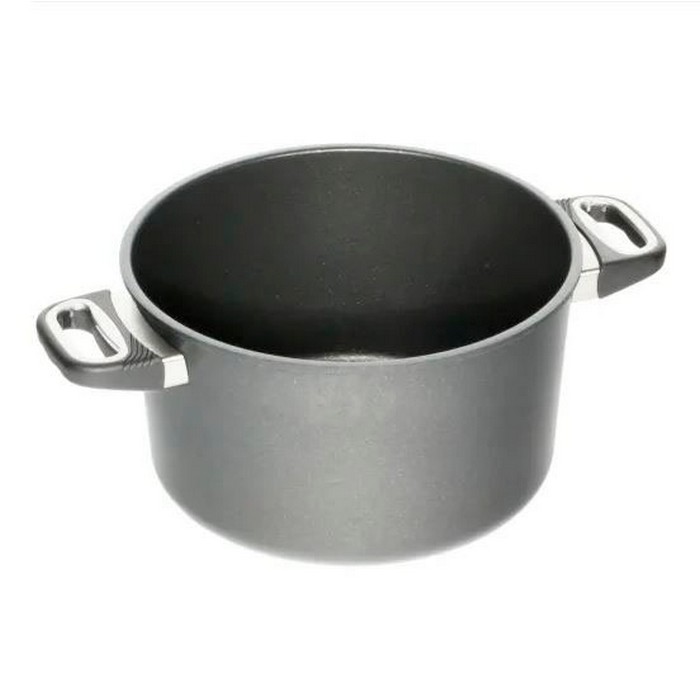 <strong> AMT Gastroguss </strong> - Cea mai bună cratiță din lume - (cea mai mare asociatie de bucatarii Germani) Vasela <strong> AMT Gastroguss </strong> au o baza foarte groasa de pana la 9 mm grosime. Aceasta stocheaza mai multa energie si nu se supraincalzeste usor. Baza cratitelor Gastroguss este renumita pentru faptul ca nu isi pierde forma, nici daca este supusa la variatii extreme de temperatura. Manerele rezista la temperaturi de pana la 240°C. Astfel, puteti gratina alimentele imediat dupa ce le-ati prajit pe plita, fara sa mai schimbati vasul. Manerele ergonomice ale vaselor au fost dezvoltate cu ajutorul echipei Culinare Nationale a Germaniei.