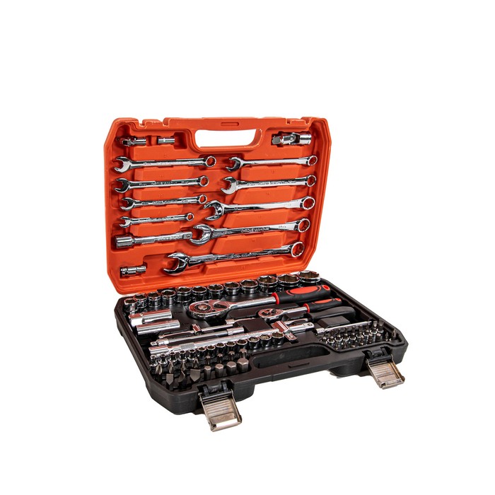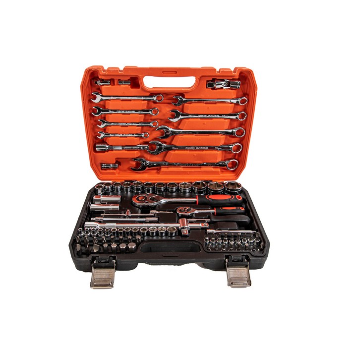Descriere 13 Tubulare de 1/4": 4, 4.5, 5, 5.5, 6, 7, 8, 9, 10, 11, 12, 13, 14; 1 clichet de 1/4"; 1 Prelungitor flexibil de 150mm de 1/4"; 2 Prelungitoare de 2" si 4"; 1 Cheie de 1/4"; 1 Articulatie universal de 1/4"; 1 "T" de forta de 1/4"; 17 Tubulare de 1/4": - Hexagonale: 3, 4, 5, 6mm; - Slot: 4, 5.5, 7mm; - Phillips; 1, 2mm; - Pz: 1, 2mm; - Torx: T8, T10, T15, T20, T25, T30; 12 Tubulare de 1/2": 13, 14, 15, 16, 17, 18, 19, 22, 24, 27, 30, 32mm; 2 Tubulare bujie de 16mm si 21m de 1/2"; 1 Clichet de 1/2"; 2 Prelungitoare de 1/2" - 5" si 10"; 1 Tri - Adaptator; 1 Articulatie universal de 1/2"; 1 Cheie cuplaj de 1/2" si 5/16"