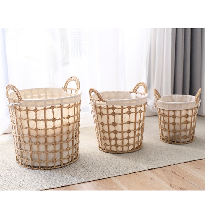 Set 3 cosuri depozitare, GS, Metal/Tesatura, 38*33*42cm/33*26*36cm/26*21*31cm, Crem