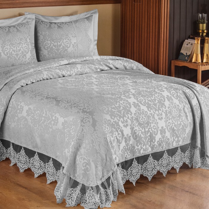Set cuvertura cu fete de perna, BIRHOME, Eliza, 240x260cm, 60x80cm, Gri, Poliester