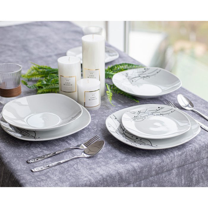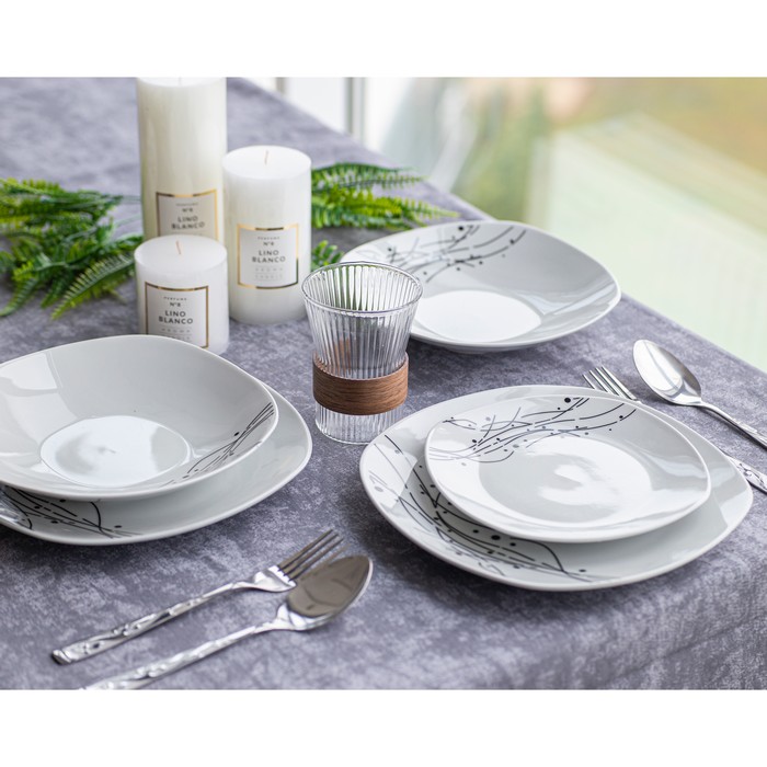 Set vesela ceramica 18piese, BRILLIANT, Ceramica, Alb, Cu imprimeu, 26.5 cm, 23cm, 20.5 cm