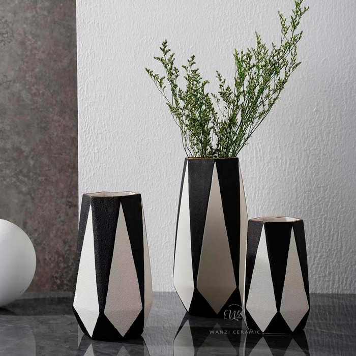 Vaza, GS, Ceramica, 29cm, 14.5cm, Alb/Negru