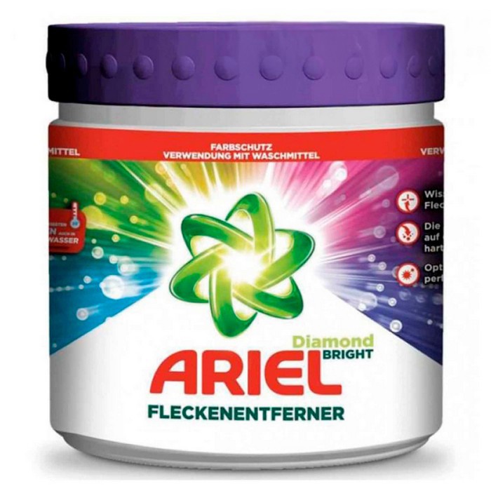 Ariel Stain Remover este un agent de îndepărtare a petelor cu o formulă de oxigen activ, datorită căruia se va obține un efect vizibil după prima spălare. Pudra poate fi folosită cu alte produse de curățare. Ariel nu deteriorează țesăturile având grijă de fibrele lor în timpul spălării. Produsul este potrivit și pentru lână și mătase. Îndepărtarea fiabilă a petelor. pentru țesături albe și colorate.