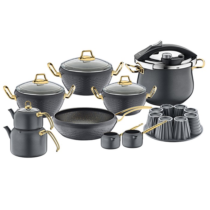 Set vase, OMS, 16 piese, Antiaderent, Aluminiu