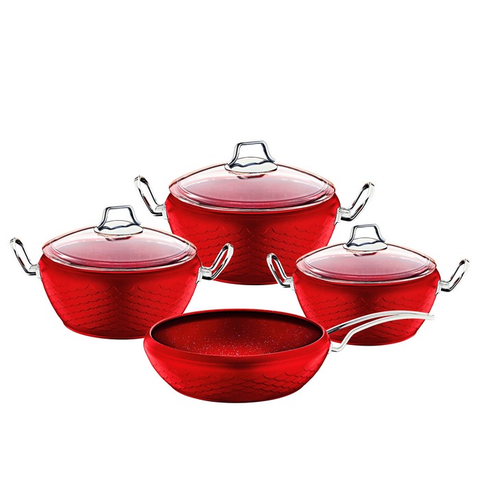 Set vase, OMS, 7 piese, Antiaderent, Rosu, Aluminiu