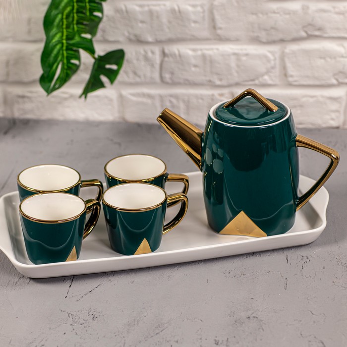 Set ceai, GLOBAL STORE, Ceramica, Smarald, 1L, 160ml