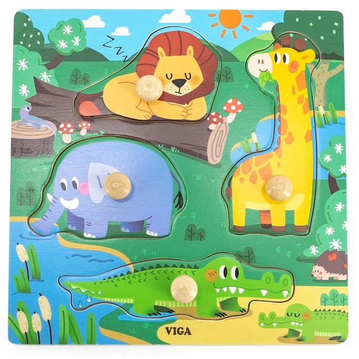Jucarie educativa, VIGA, Animale din jungla, Lemn, 1-3 ani