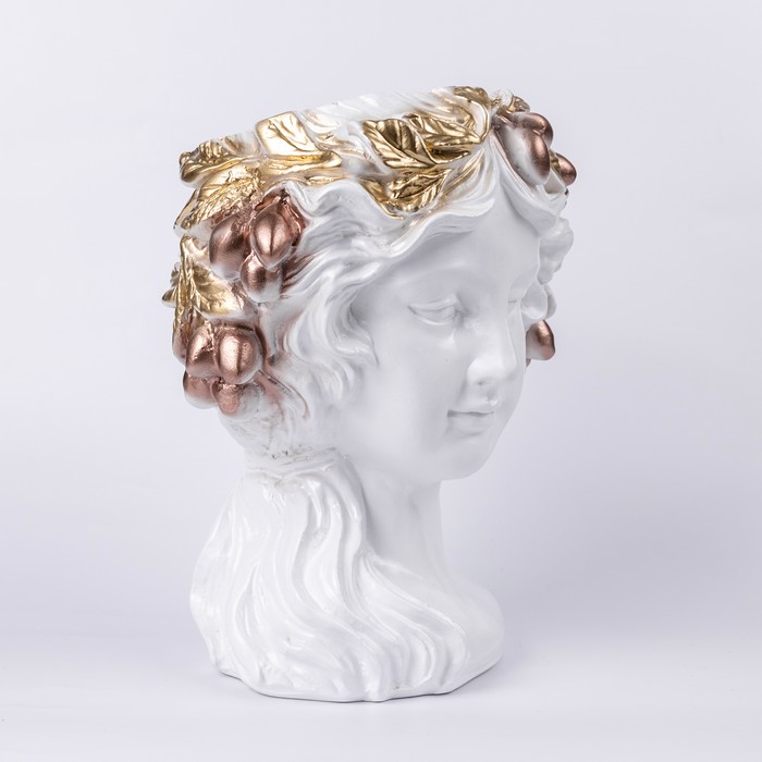 Ghiveci decorativ cap, ORIENS, Gips, Alb/Auriu
