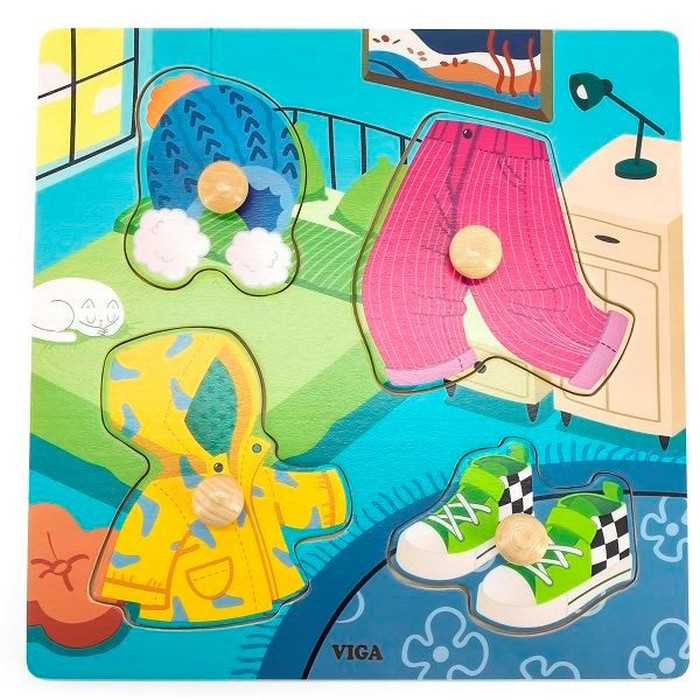 Jucarie educativa mantensori hainute, VIGA, Lemn, 3+