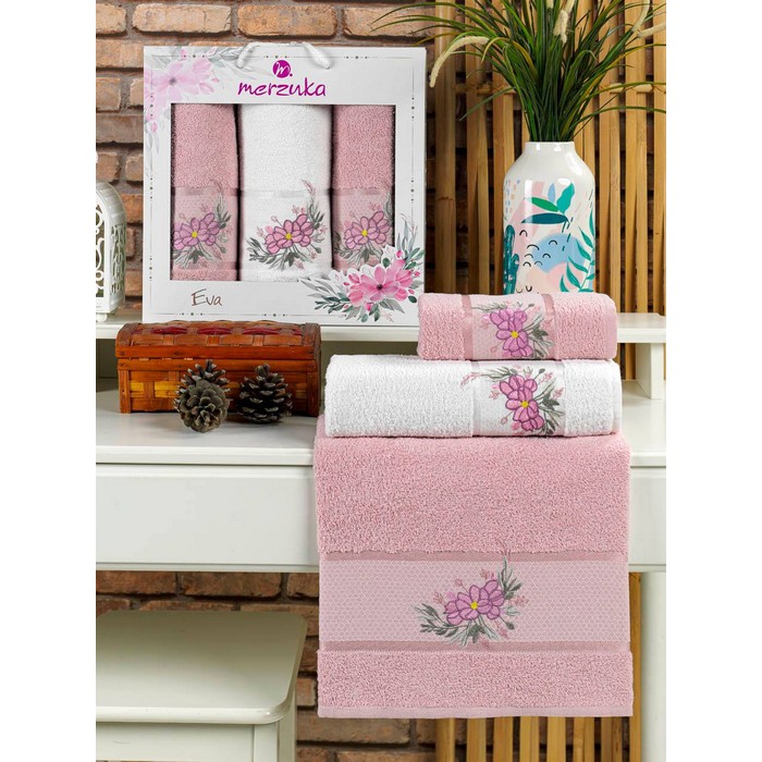 Set prosoape, MERZUKA, 3 buc, Eva, 50x90 cm, 70x140 cm, Bumbac, Diverse Culori