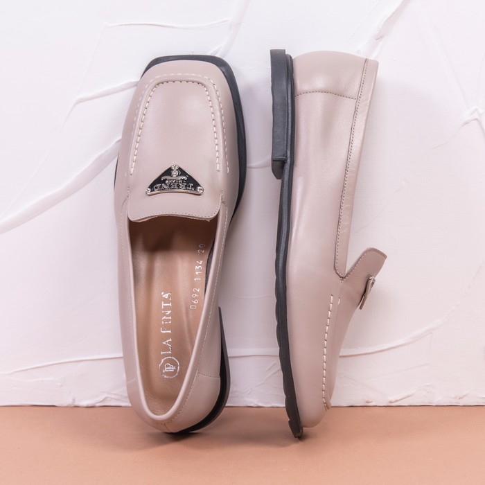 Mocasine femei, LA PINTA, 36-40, Bej, Piele naturala, Talpa Cauciucata