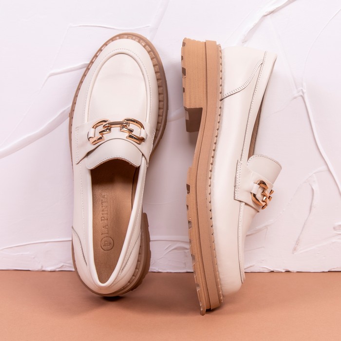 Mocasine femei, LA PINTA, 36-40, Bej, Piele naturala, Talpa Cauciucata