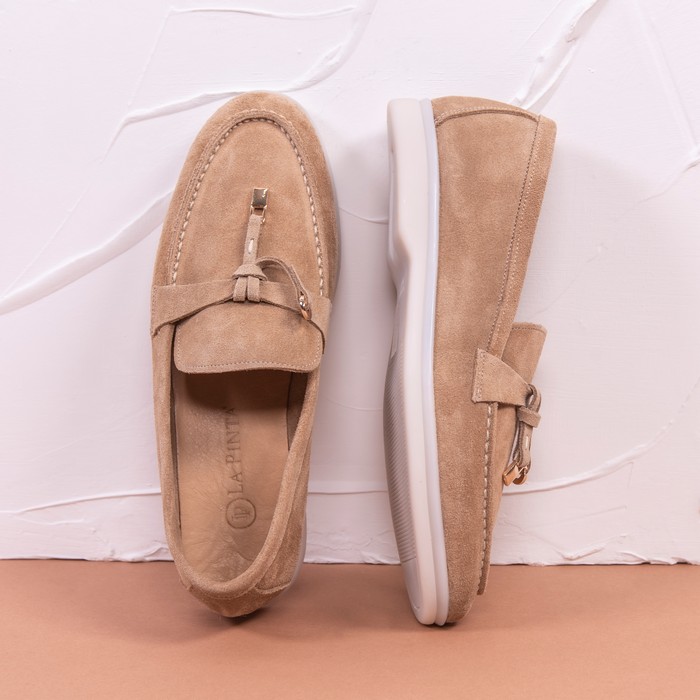 Mocasine femei, LA PINTA, 36-40, Bej Inchis, Piele naturala/Nabuc, Talpa Cauciucata
