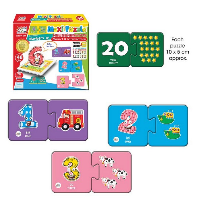 Maxi puzzle numbers, Akar, 48 piese, Carton, Aplicatie Electronica, 3+