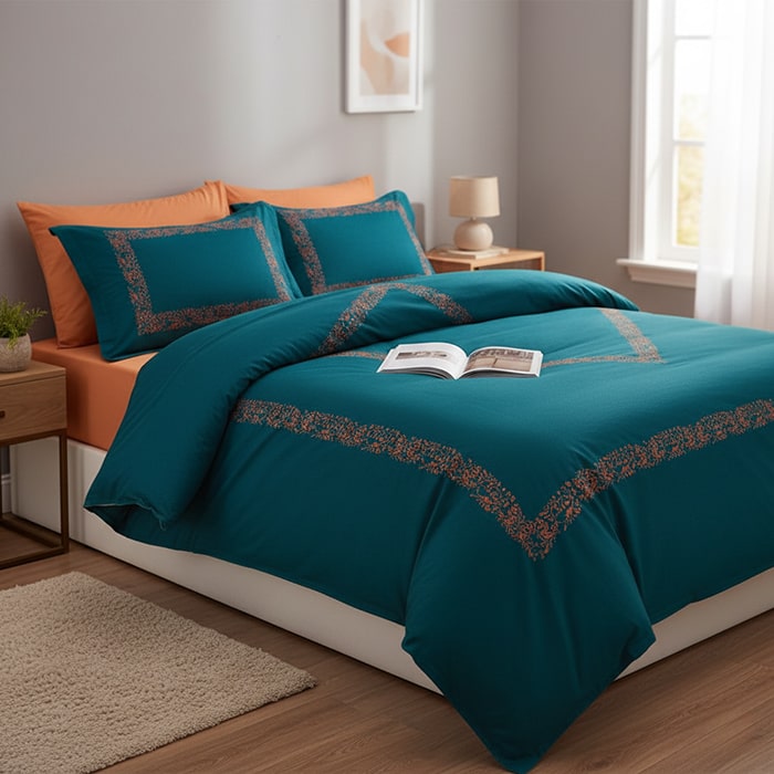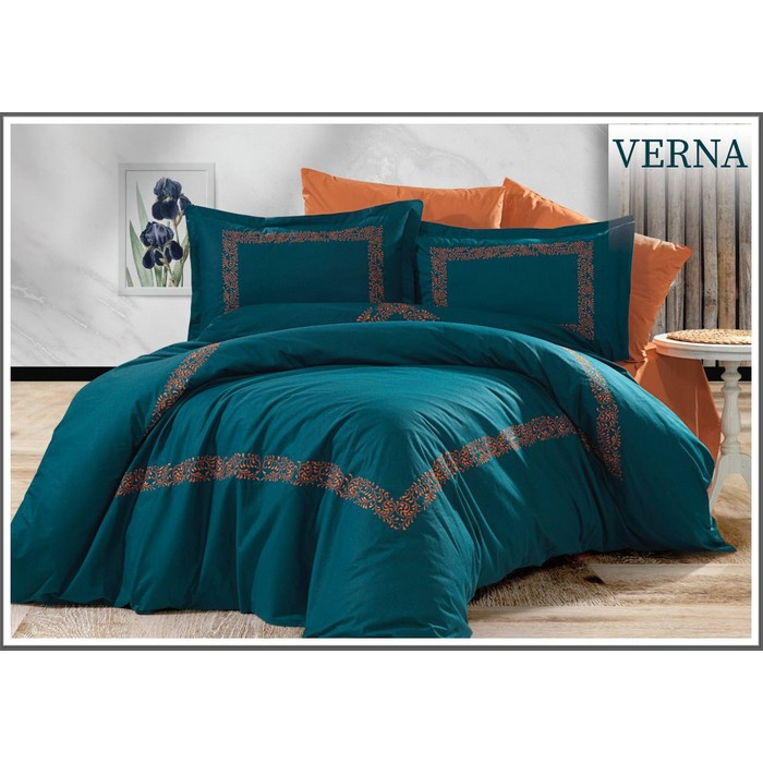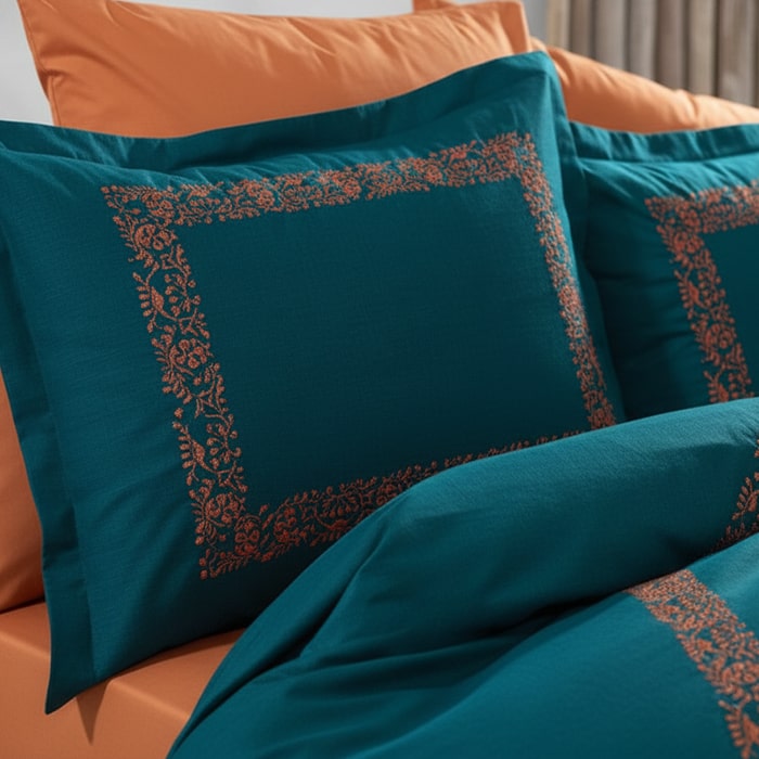 Set lenjerie de pat, MISS BELLA, 240x260cm, 200x220cm, 50x70cm (4), Bumbac in amestec, Oranj/Verde, Turcia