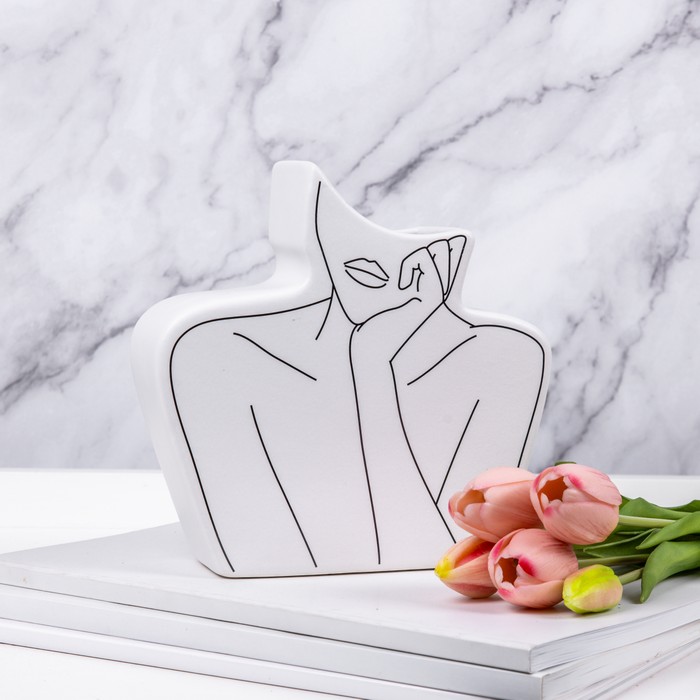 Vaza, GS, Ceramica, 19.3x6x19 cm, Alb/Negru