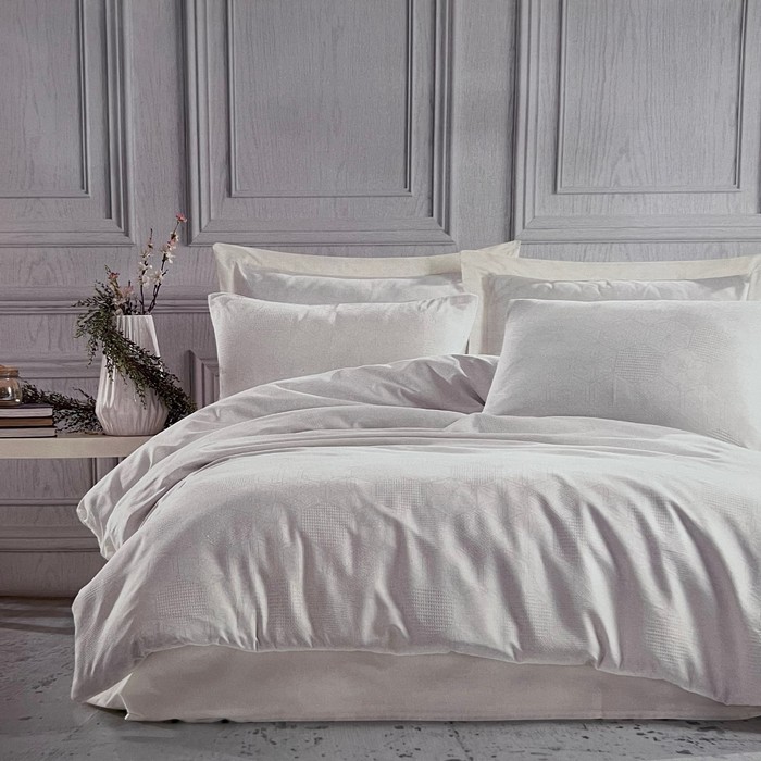 Lenjerie de pat, SAHESER, 6 piese, Bumbac, Double Size, 240x260cm, 200x220cm, 50x70cm (4), 120gr/m2, Crem