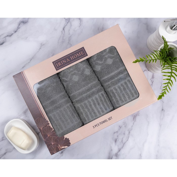 Set 3 prosoape, IRINA HOME, Bumbac, 70x140 cm, 50x90 cm, Gri Inchis