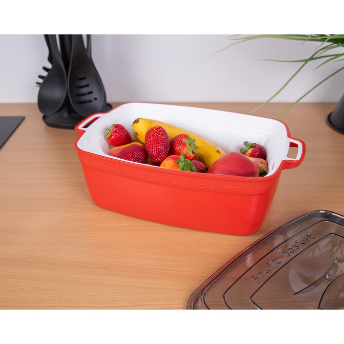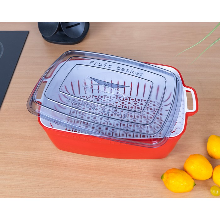 Container, BEE HOME, pentru fructe, 22x30x11 cm, Plastic, Dreptunghiular, Cu sita, Cu capac