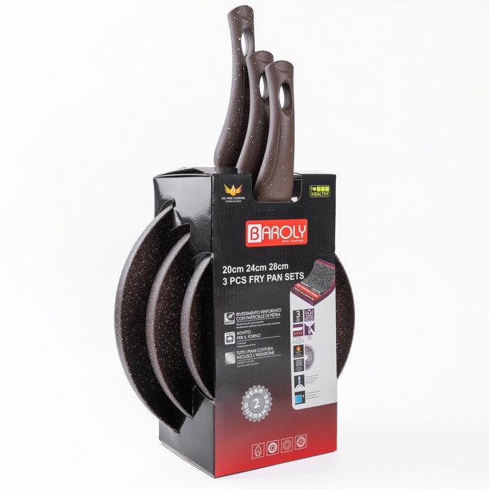 Set tigai, BAROLY, 3 piese, 20cm, 24cm, 28cm, Aluminiu, Electrica,gaz, Antiaderent, 2mm