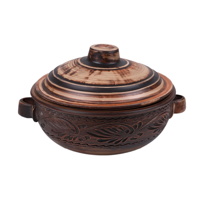 Oala cuptor, ORIENS, Argila, 3 L, Angob, 10 cm, 32 cm, Cu capac, Cu 2 manere