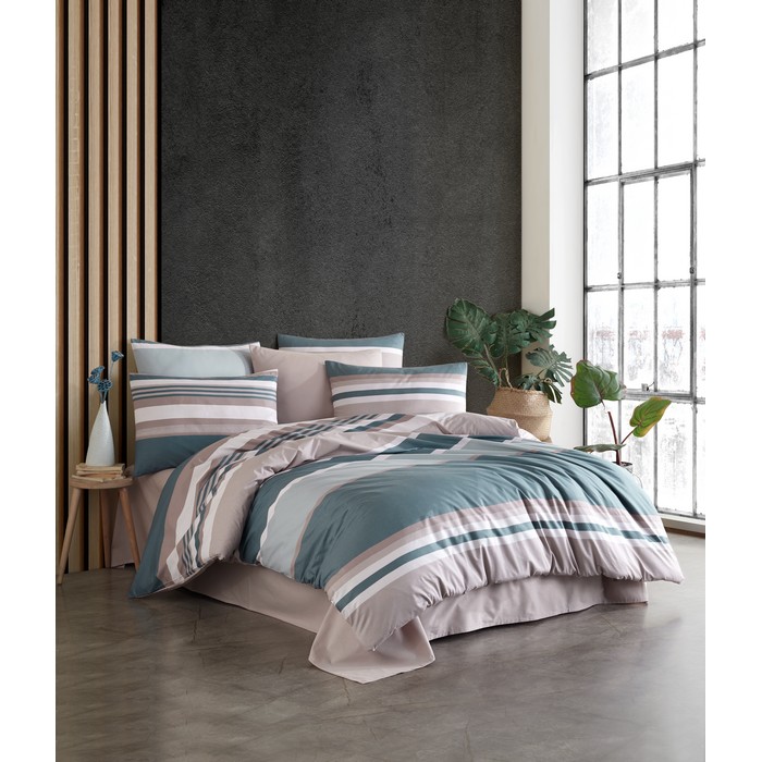 Lenjerie de pat, NAZENIN, 6 piese, 200x220cm, 240x260cm, 50x70cm (4), Bumbac, Caramel