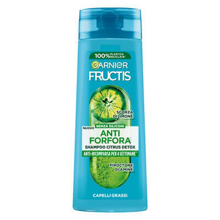 Șamponul Fructis Citrus Detox Anti-Mătreață, care conține ingrediente active antibacteriene și extract de coajă de lămâie, elimină și previne mătreața vizibilă. În plus, curăță pielea