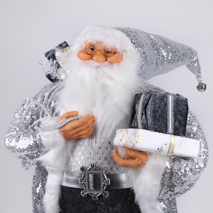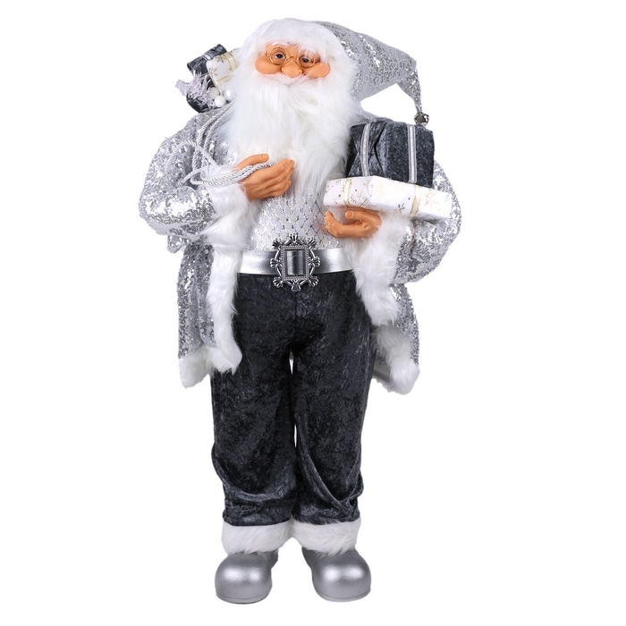 Mos craciun, GLOBAL CHRISTMAS, 1.50cm, Argintiu, Textil/Plastic