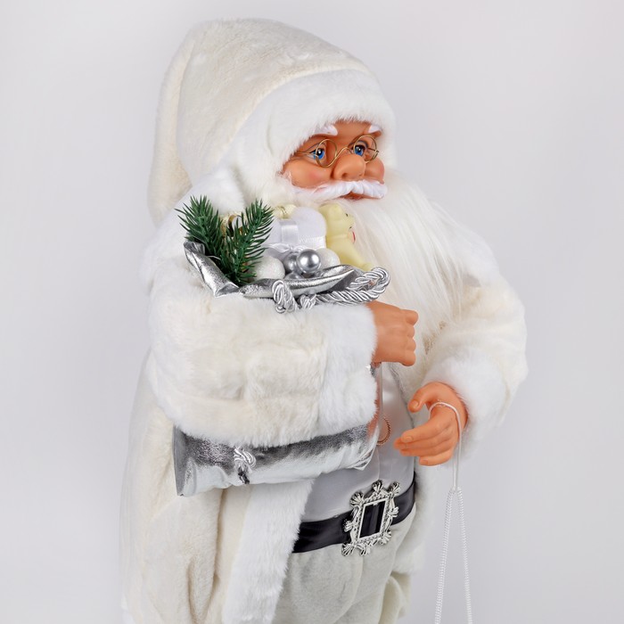 Mos craciun, GLOBAL CHRISTMAS, 60cm, Alb, Textil/Plastic