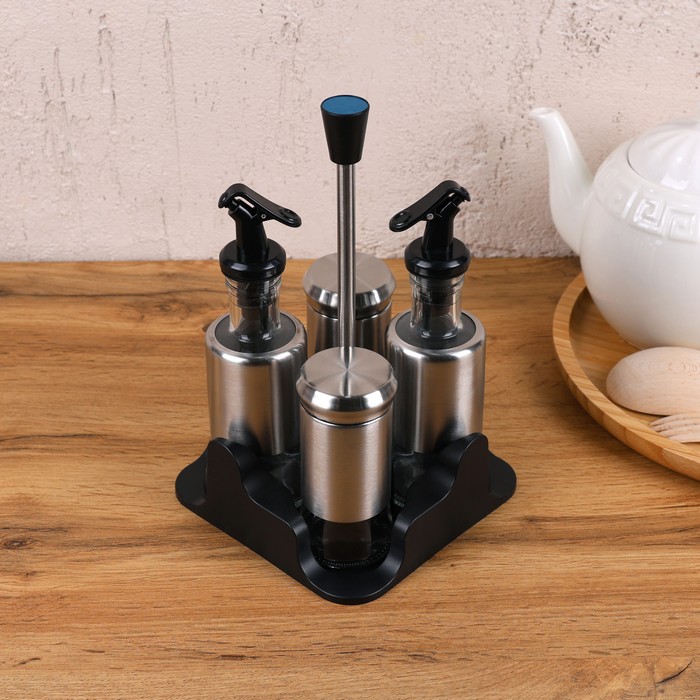 Set recipiente condimente, GS, 4 piese, Inox 201, Monocrom
