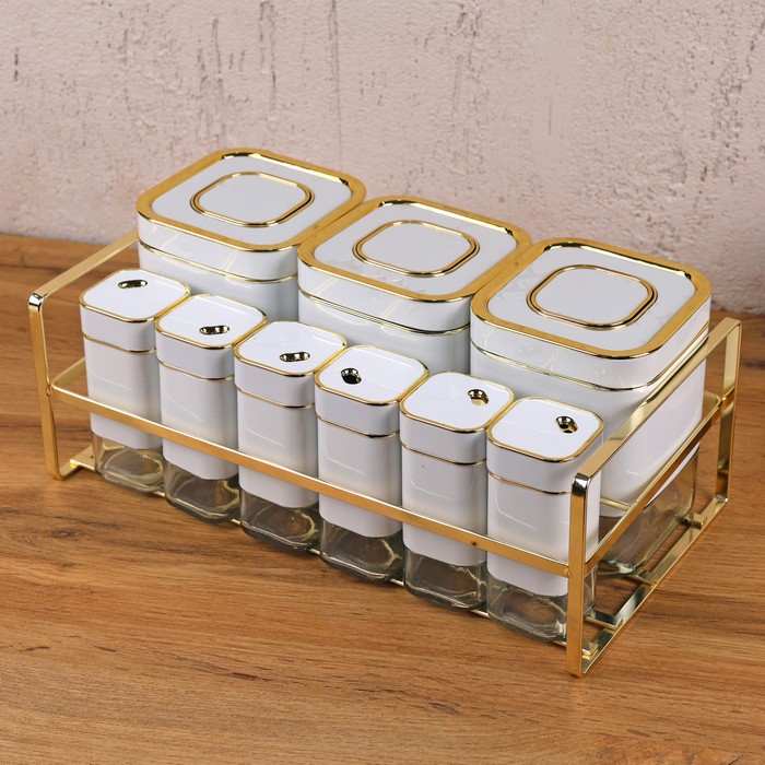 Set recipiente depozitare, GS, 9 piese, Inox, Alb