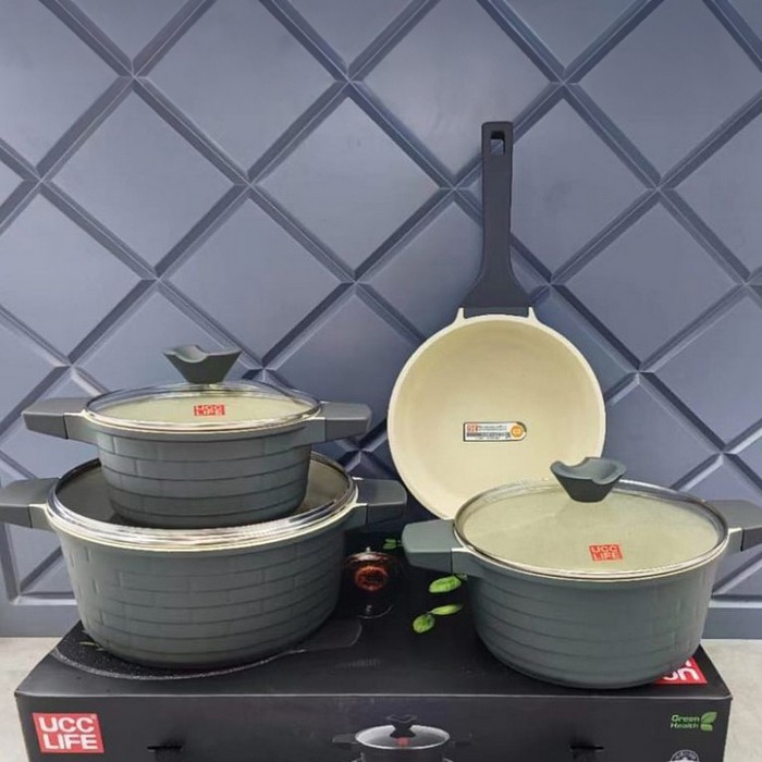 Set cratite, UCC LIFE, 7 piese, Aluminiu, 2.2 mm, Antiaderent, 20cm, 24cm, 28cm, Cu capac