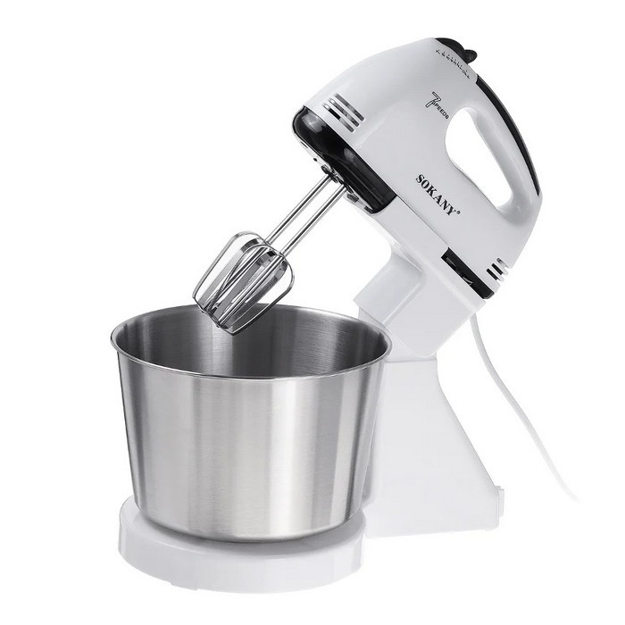 Mixer cu bol, SOKANY, Otel inoxidabil/Plastic, 250 W, 2L, 7 trepte, Alb/Negru
