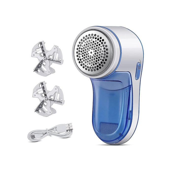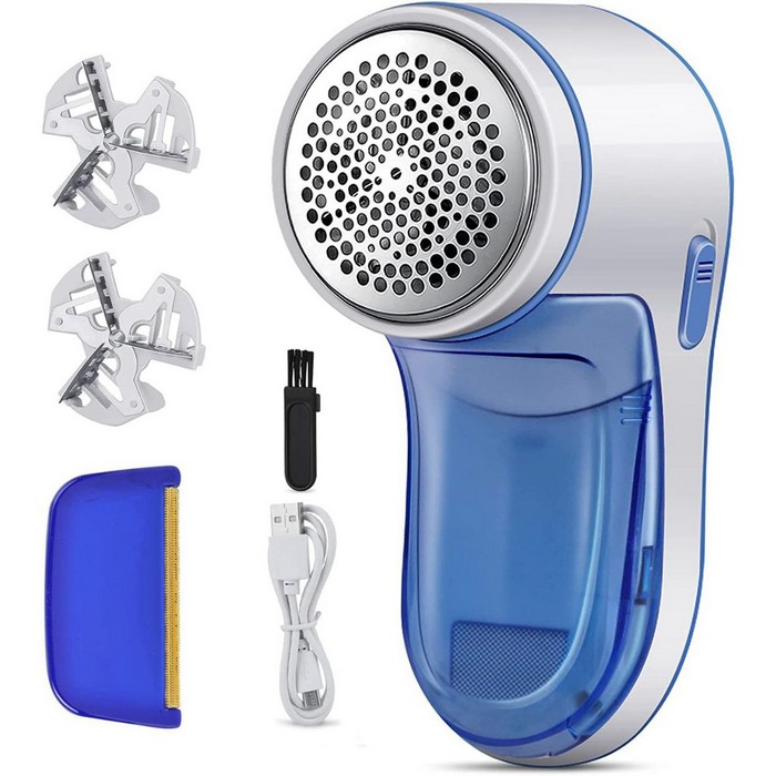 Aparat de curatat scame, TIffANY, Plastic/Metal, 3 W, Alb/Albastru, 2 lame, Haine, paturi, perne, canapele