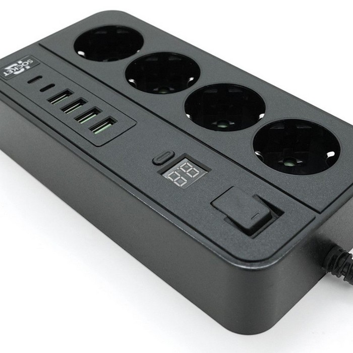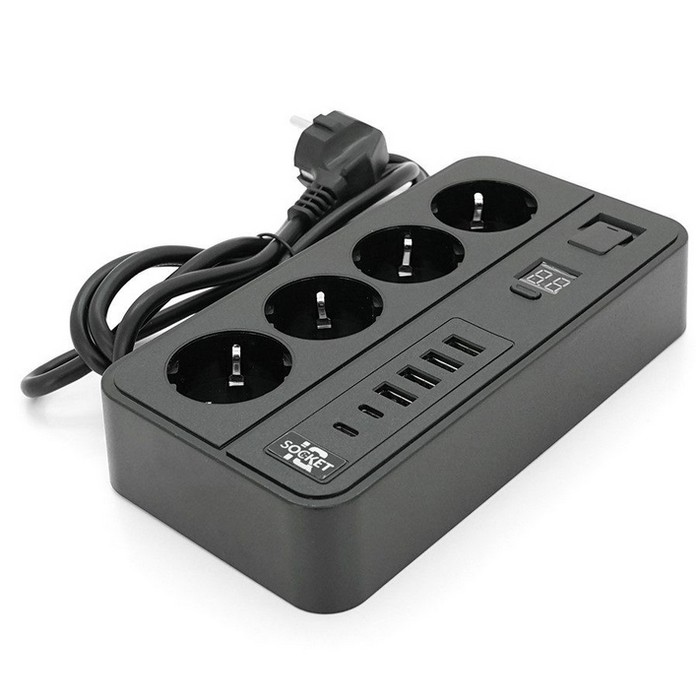 Extensor de priza, GS, Plastic, USB-A + USB-C, 3000 W, Negru