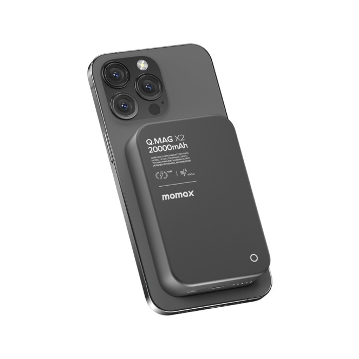 Baterie externa, Momax, Fara fir, MagSafe, 20 000 mAh, USB-C, Aluminiu, Negru