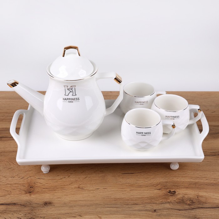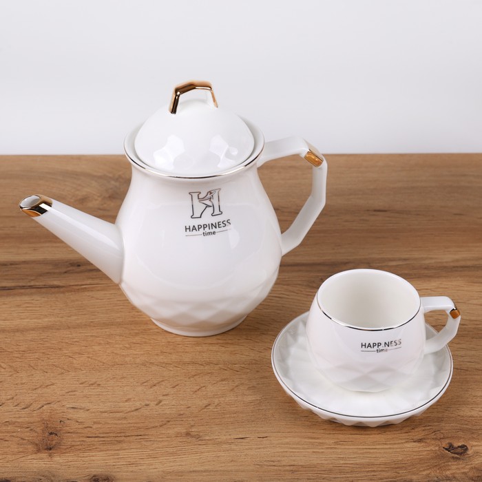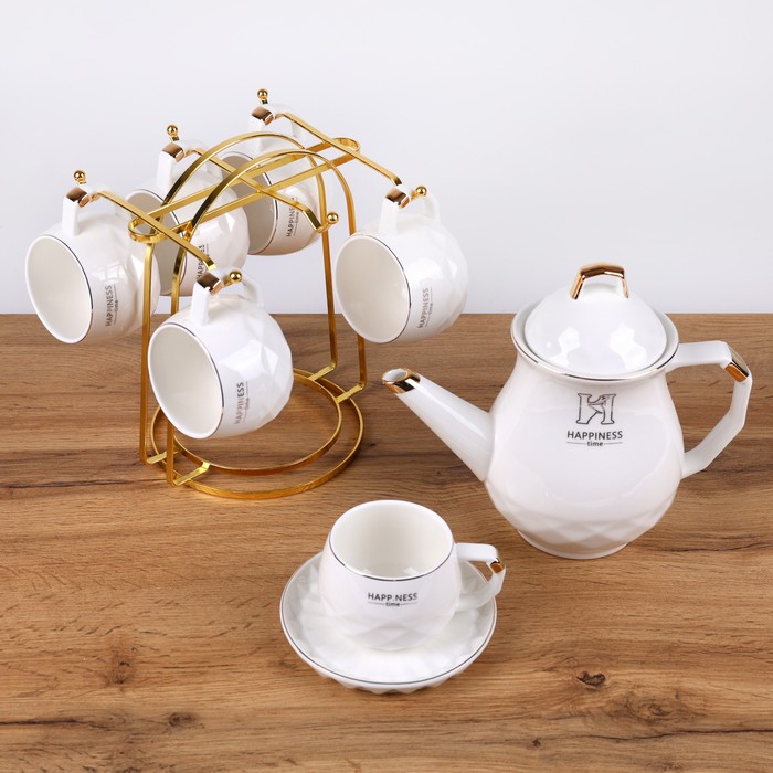 Set ceai, GS, Portelan, 8 buc, Alb/Auriu