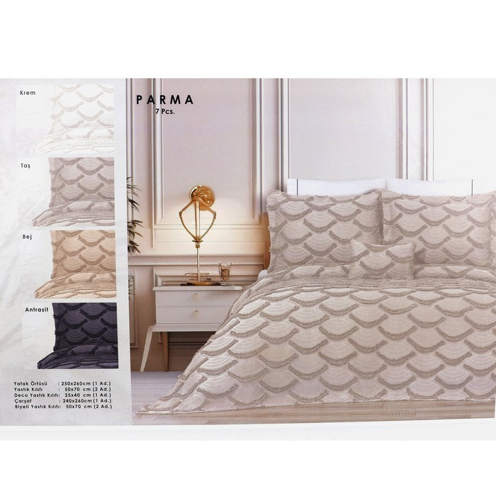Cuvertura set, IRINA HOME, 7 piese, 250x260 cm, Bumbac, Antracit, 50x70cm (4), 25x40cm, 240x260cm