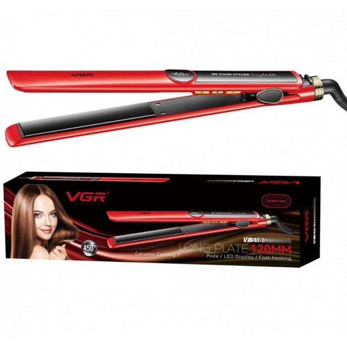 Placa de indreptat parul, VGR, Ceramica, Roz, 60 W