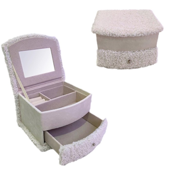 Organizator bijuterii, GS, Blana artificiala/Sintepon, 14.5x12x9 cm, Bej