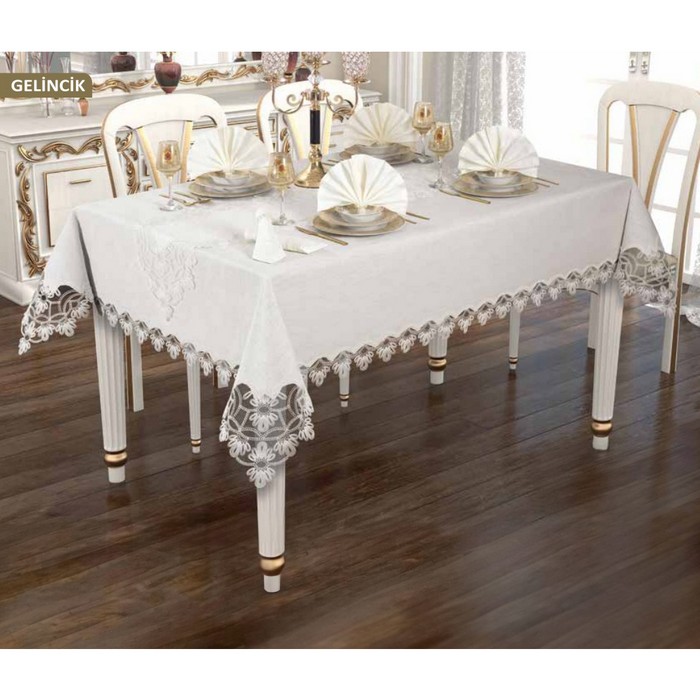 Set fata de masa, ATAK HOME, 14 piese, 160x220 cm, Gelincik, Crem, Poliester