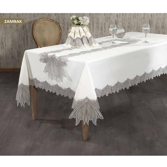 Set fata de masa, ATAK HOME, 14 piese, 160x220 cm, Zambak, Crem, Poliester
