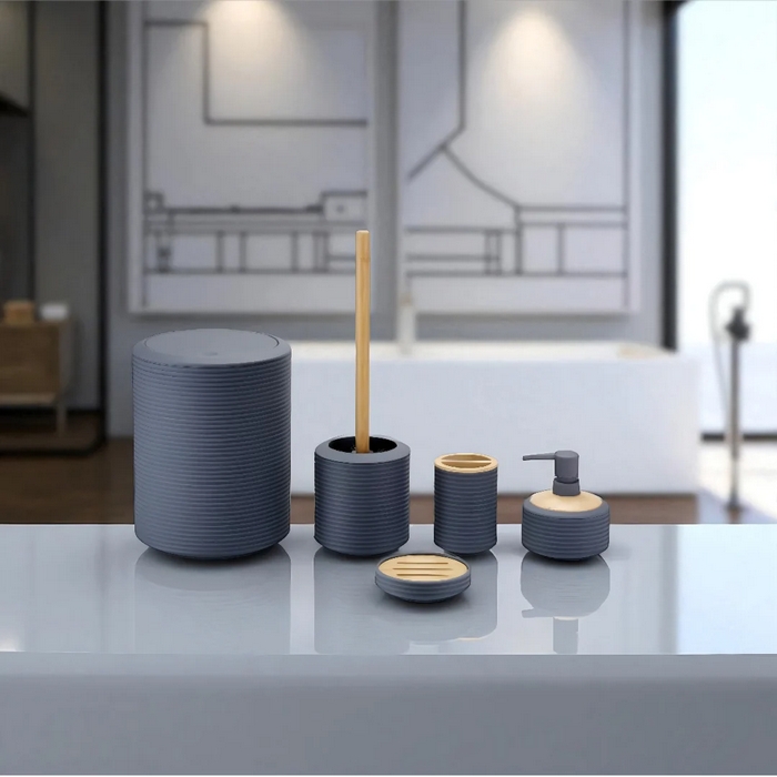 Set accesorii baie, GS, 5 piese, Plastic/Bambus, Gri