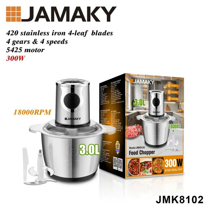 Maruntitor electric, JAMAKY, Metal/Plastic, 300 W, 3L, Retea, Negru/Gri